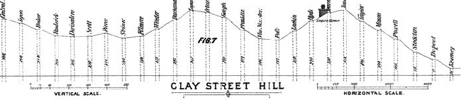 This grip was soon replaced on other newer cable car lines by different types of grips, due to patent and other issues. Still, this screw grip seen on Clay Street Railroads Car #8 was used on the first commercial cable car line in the world, and as such is a valuable and exciting addition to the museum's historical collection. As part of the Clay Street Hill Railroads .6-mile route, it ran up and over Nob Hill for the two decades of the company's operation.